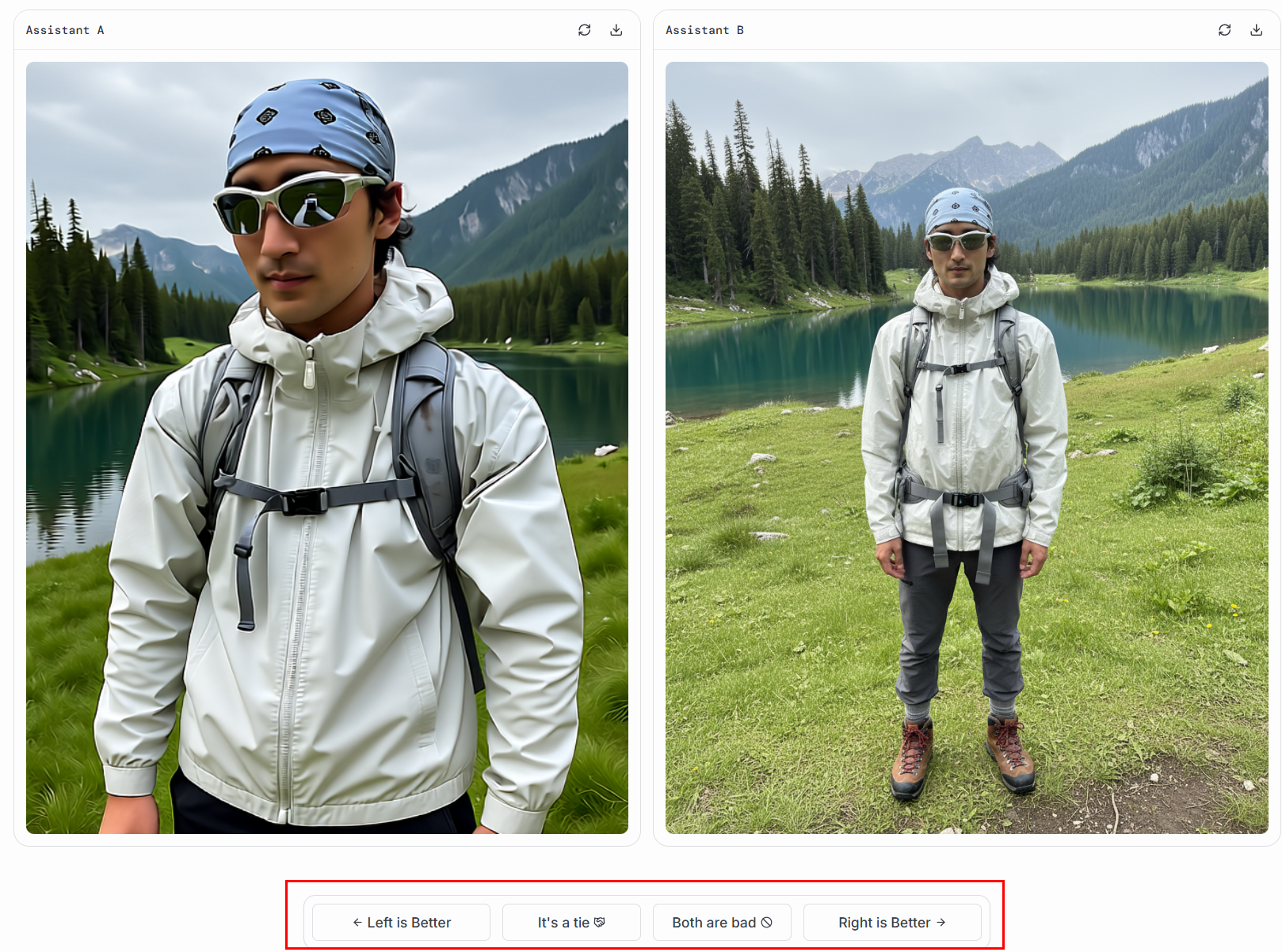 그러면 이렇게 A, B로 생성을하고 이미지 생성 결과에 대한 피드백을 주면 어떤 모델인지 확인이 가능하다
